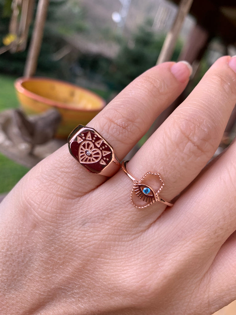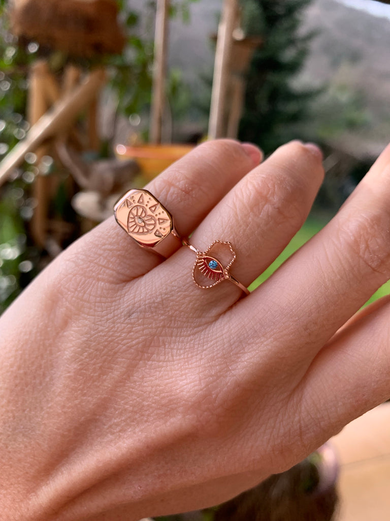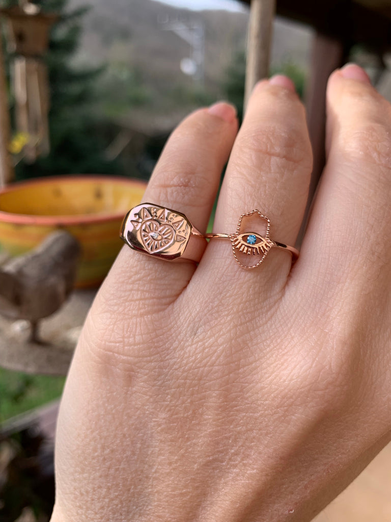 Göz ve Kalp Detaylı Şövalye Yüzük